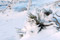 Snow and ice covered branches hang toward the ground during the cold winter at Presque Isle Park in Marquette, Michigan.