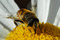A bee sucks the nectar from a flower outside Moosewood Nature center at Presque Isle Park in Marquette, Michigan.