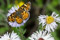 A butterfly briefly lands on a flower as it flies across a field at Presque Isle Park in Marquette, Michigan.