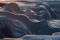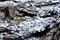 Ice covered rocks mimic the shape of waves as the sunset glistens off of them at Black Rock at Presque Isle Park in Marquette, Michigan.