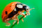 A ladybug balances on a single blade of grass in Greenfield, Wisconsin.