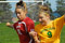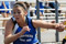 An United States Olympic Education Center boxer keeps eye contact as he competes in the Olympic Challenge at the Superior Dome in Marquette, Michigan.